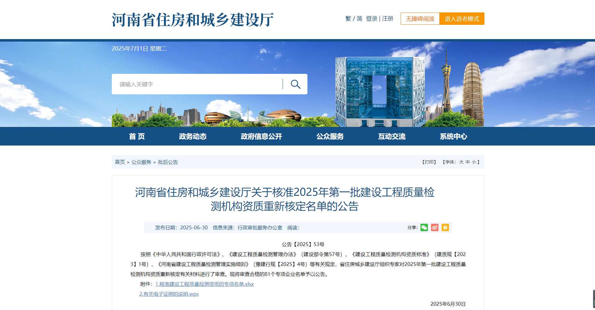 熱烈祝賀我司通過河南省住建廳2025年第一批建設工程質量檢測機構資質重新核定!!!